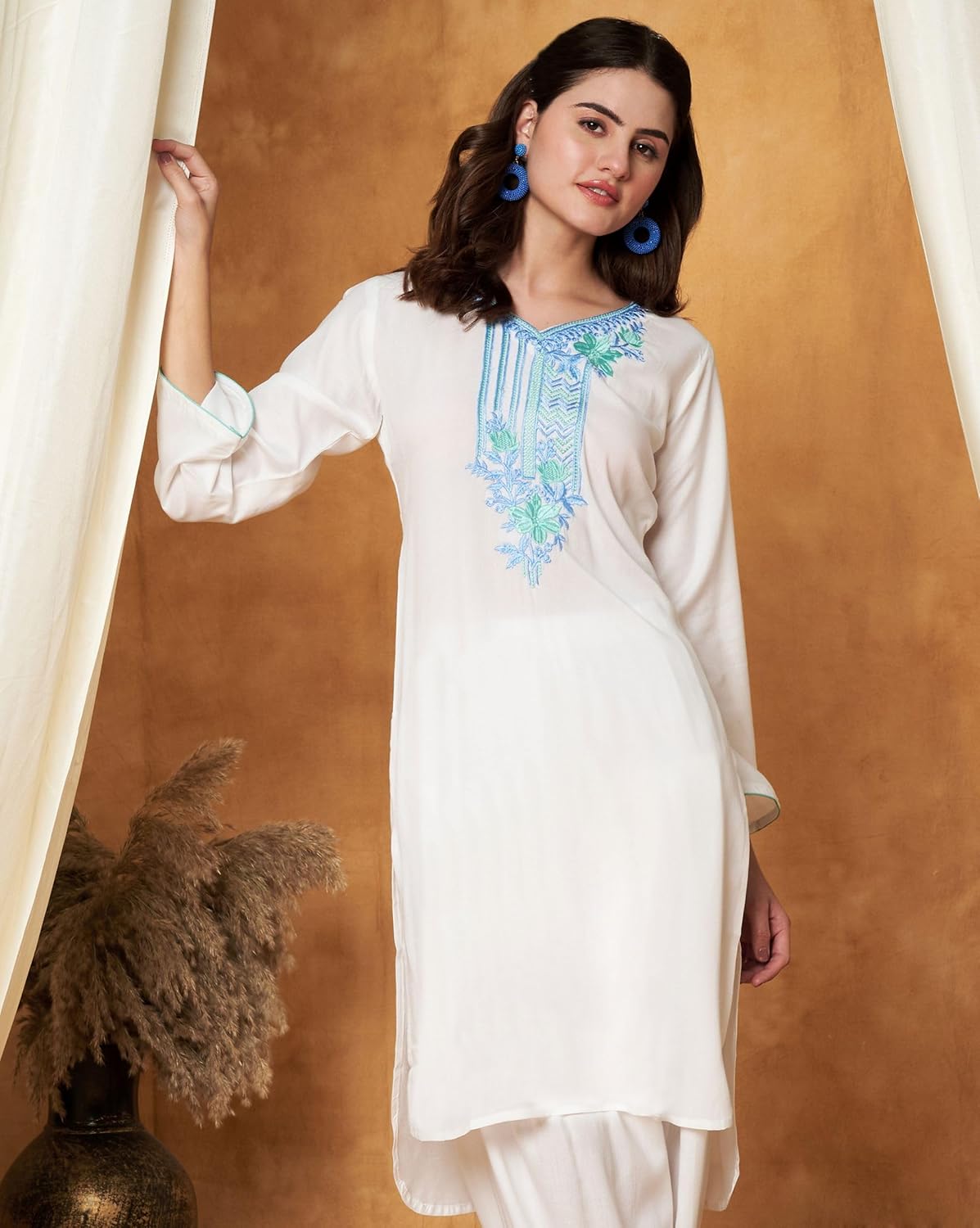 SHADES OF FAASHION Rayon Chikankari Kurta with Farshi Salwar – Elegant handcrafted embroidery with a comfortable and stylish fit.
